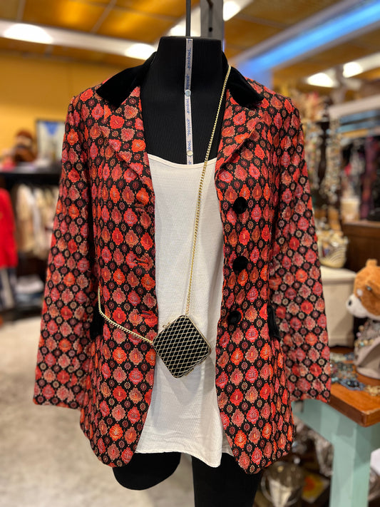 Blazer Brocado com golas, botões e bolsos em veludo alemão