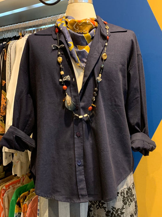 Camisa de linho azul marinho