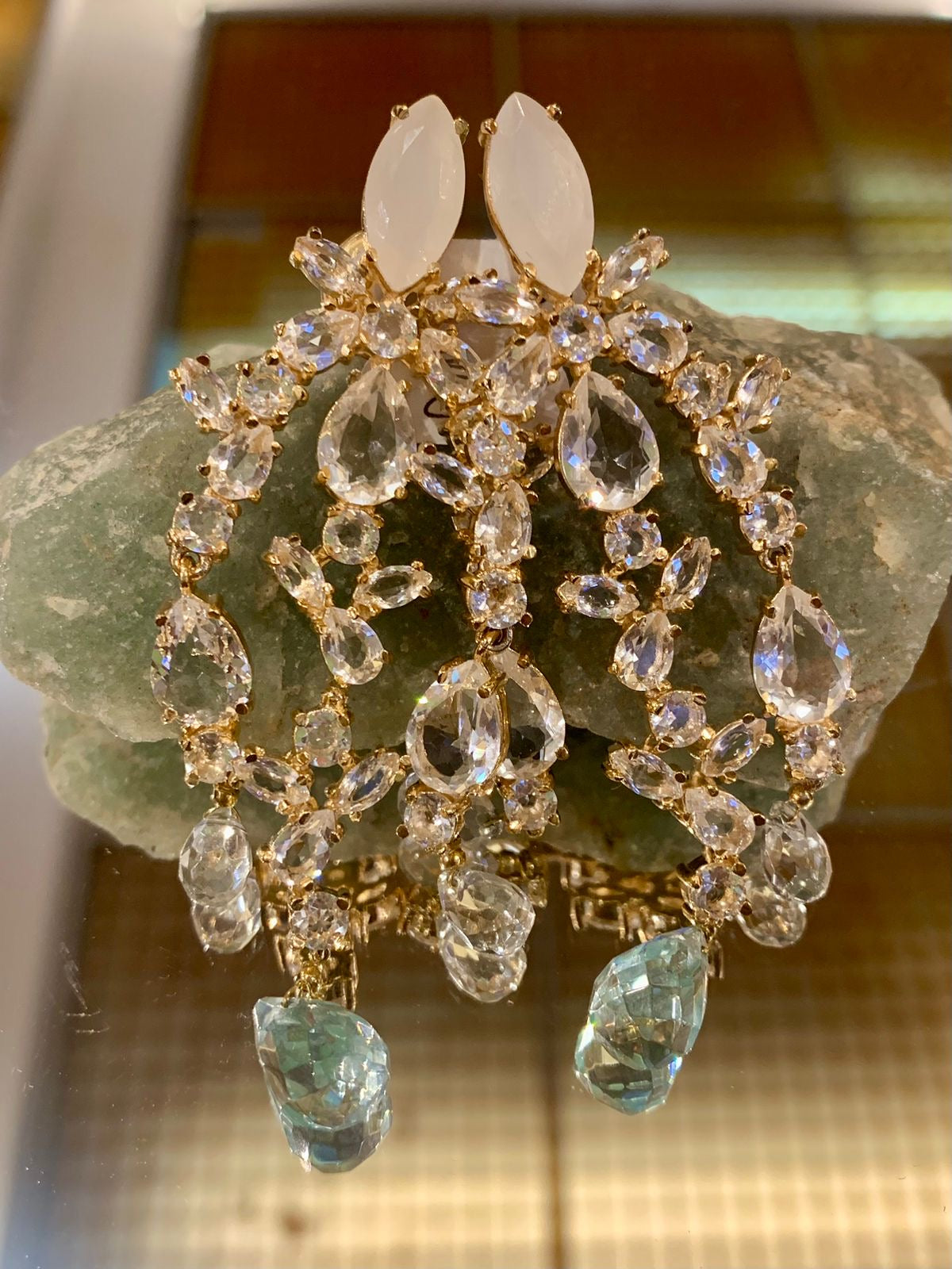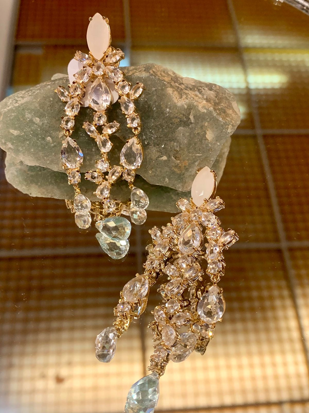 Brinco de cristais banhado a ouro 18k