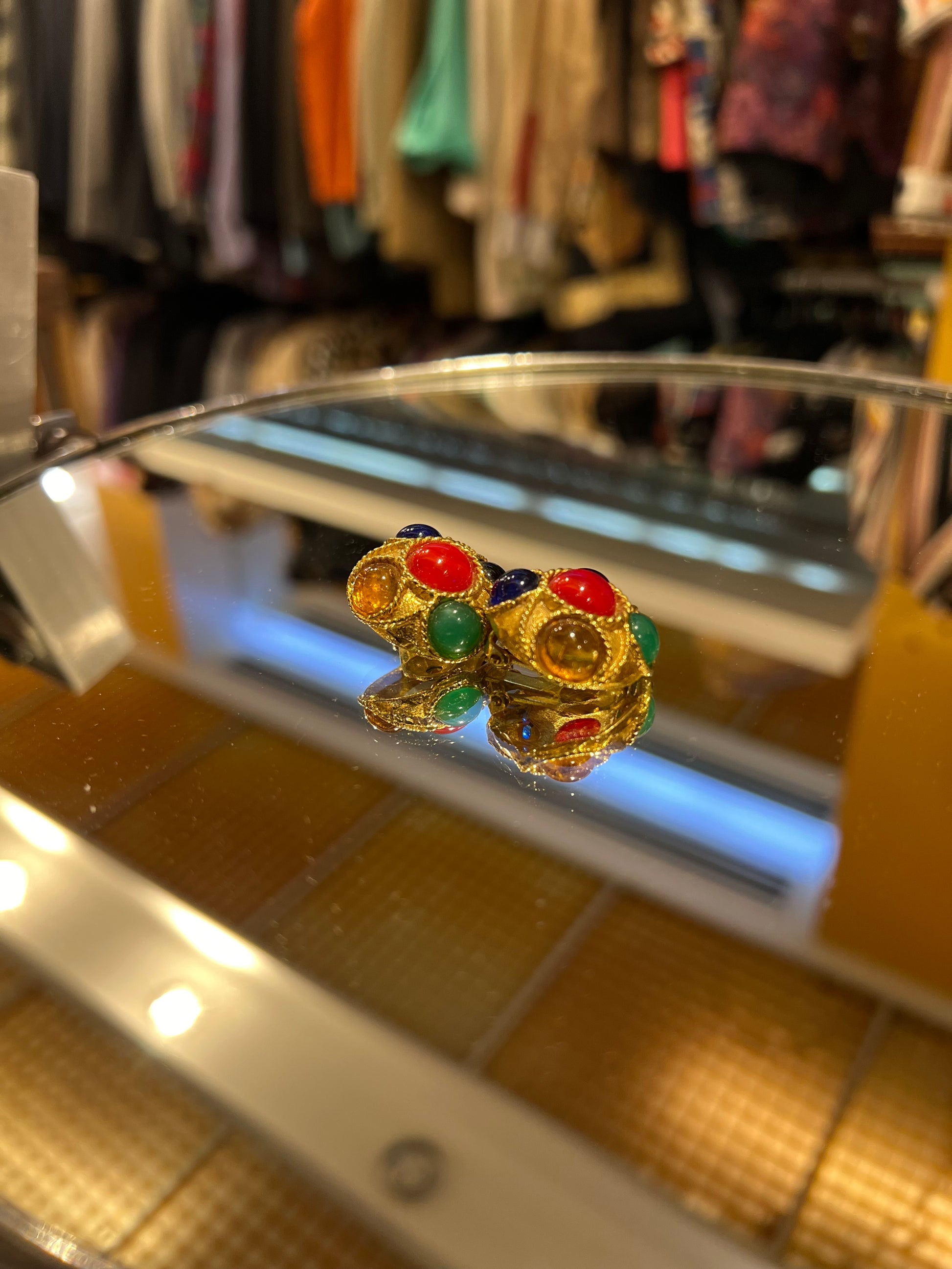 Com um design que mistura cores e formas, esse brinco traz um visual alegre, ideal para compor desde produções casuais até looks mais ousados e criativos.