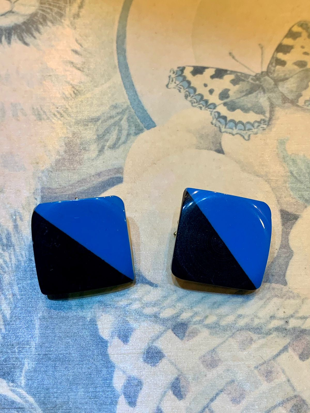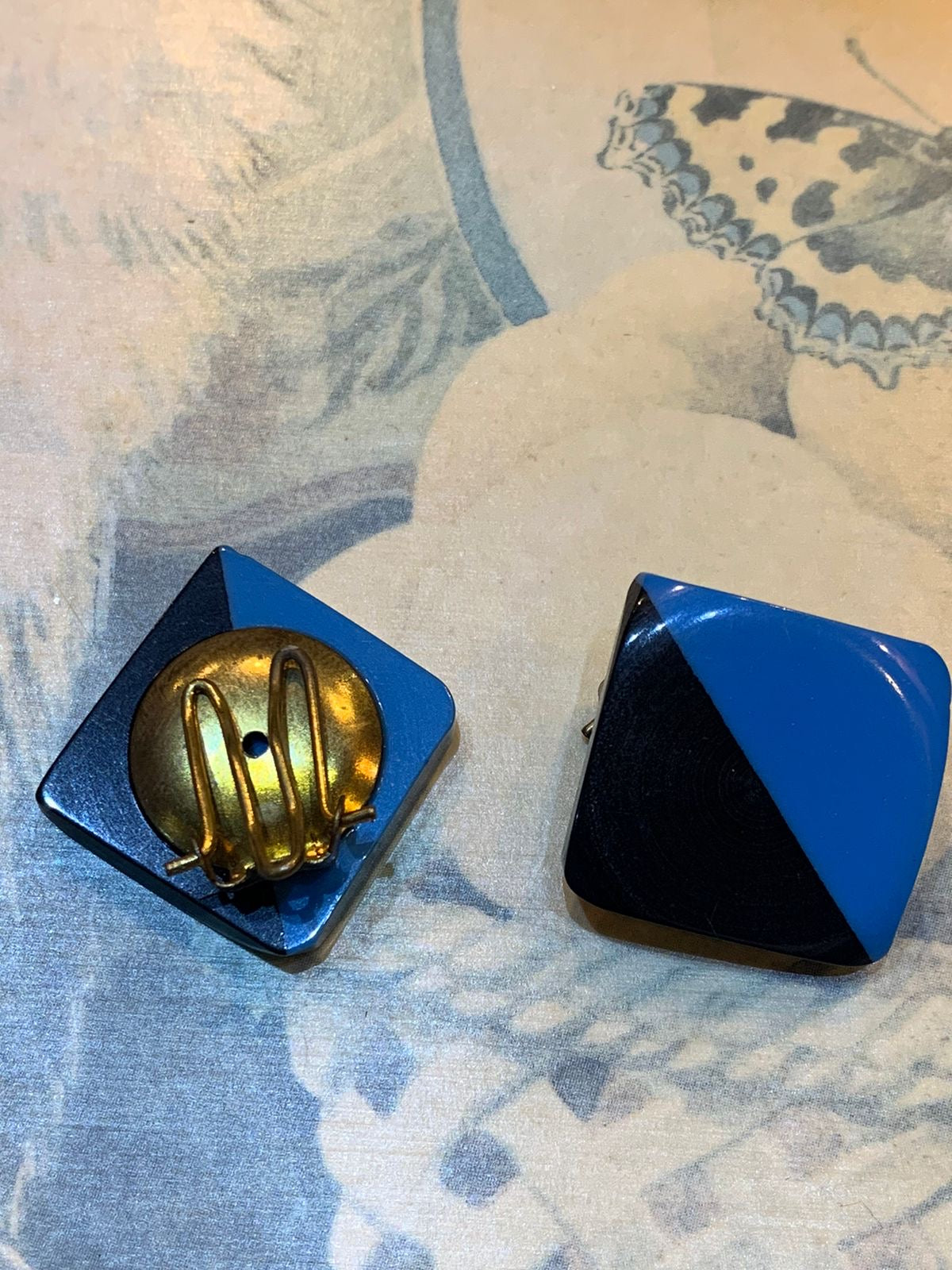 Brinco de pressão quadrado azul e preto