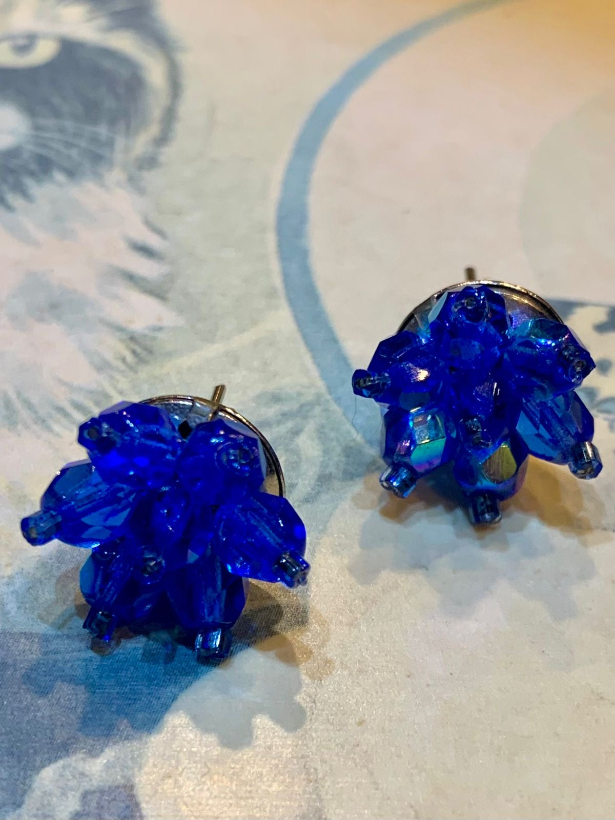 Brinco de tarraxa em miçangas azul royal