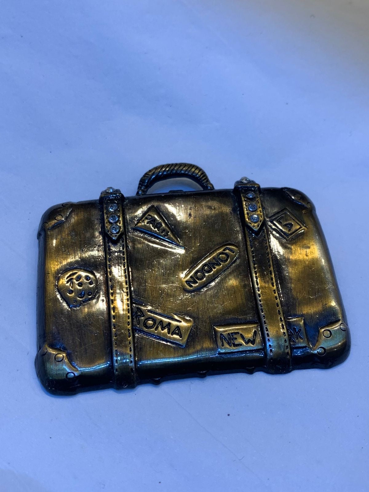 Estilo e diversão em um acessório único. Este broche em formato de mala é perfeito para adicionar um toque criativo e cheio de personalidade a blusas, casacos ou bolsas. Uma peça versátil que transforma qualquer look com charme e originalidade.