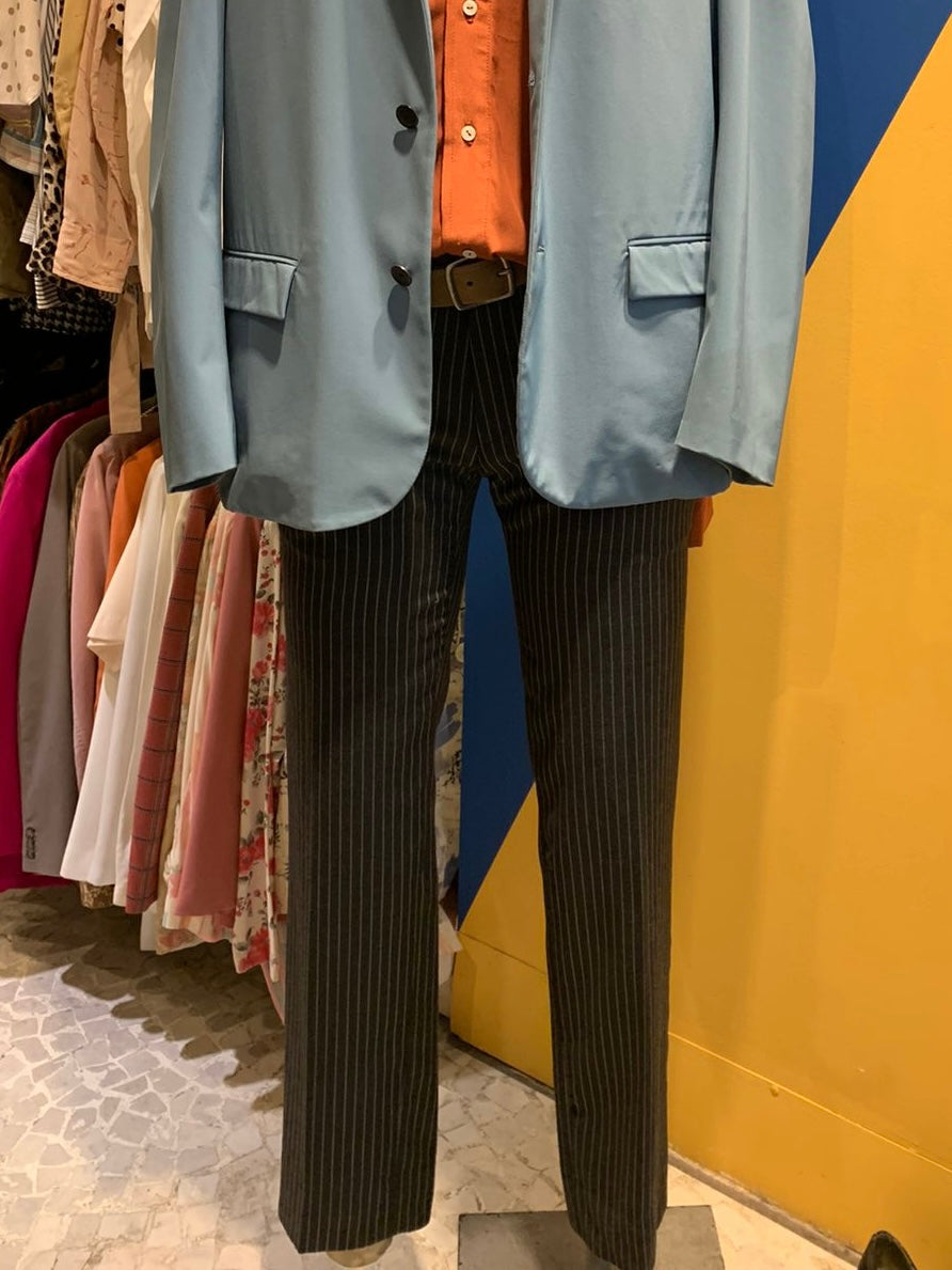 Combinando a clássica estampa de risca de giz com a suavidade e conforto da lã de alta qualidade, essa calça oferece um corte impecável que valoriza a silhueta,criando um look sofisticado e moderno ao mesmo tempo.