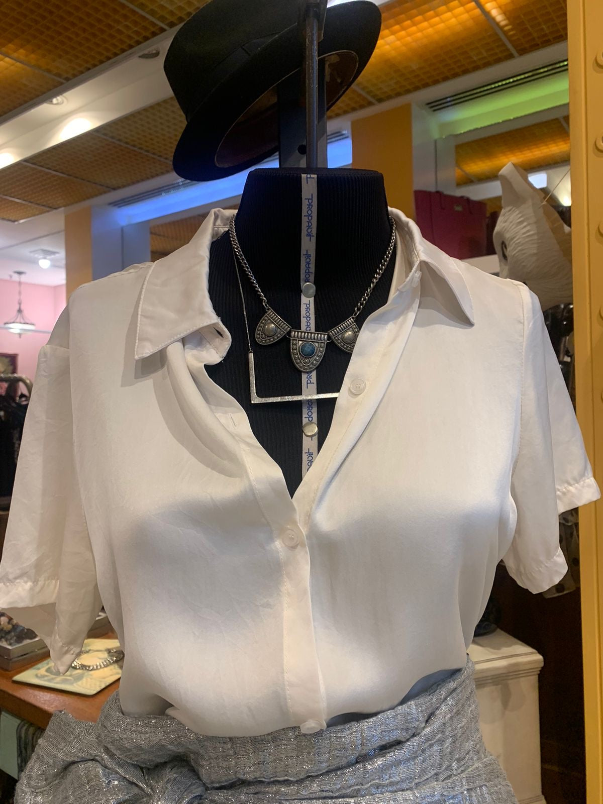 Elegância e sofisticação definem a Camisa Branca Acetinada de Seda, uma peça indispensável para composições refinadas.