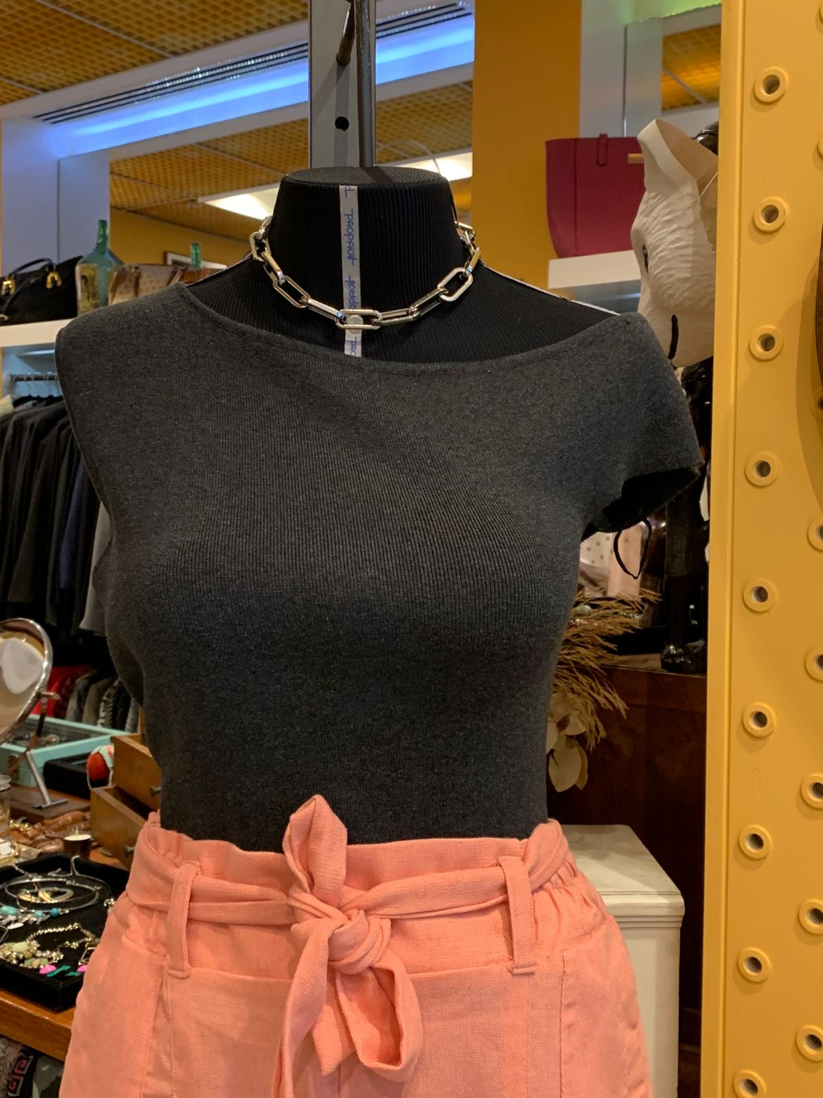 O design assimétrico adiciona um toque único, ideal para composições que vão do casual ao sofisticado. Combine com jeans, saias ou calças sociais para criar visuais variados, sem perder a originalidade. Disponível em tamanhos variados, esta camiseta é a escolha certa para quem valoriza estilo e autenticidade.