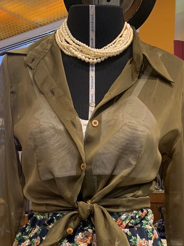 O entrelaçamento das pérolas cria um efeito único, trazendo um brilho sutil e uma aparência luxuosa para qualquer ocasião.