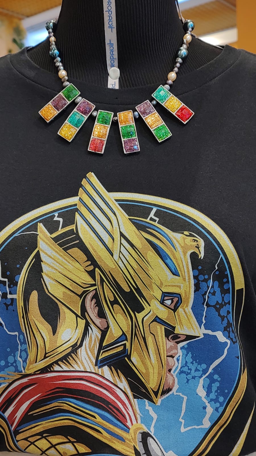 Com um toque único de criatividade e sustentabilidade, o colar upcycling colorido é a escolha perfeita para quem busca um acessório exclusivo e ecológico. Confeccionado a partir de materiais reutilizados, cada peça é cuidadosamente elaborada, combinando cores vibrantes e design moderno. Ideal para quem valoriza a moda consciente, este colar adiciona personalidade e estilo a qualquer look, seja no dia a dia ou em ocasiões especiais.