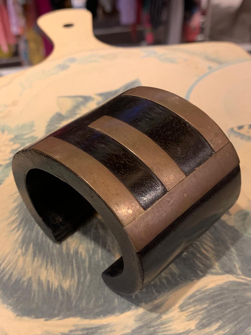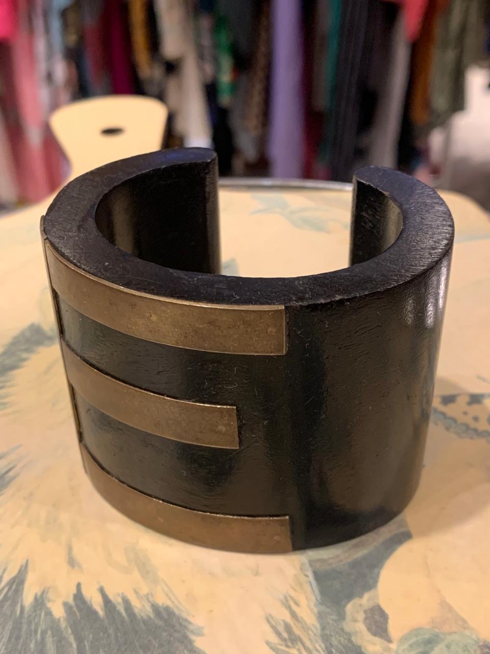 Pulseira grossa vazada em madeira