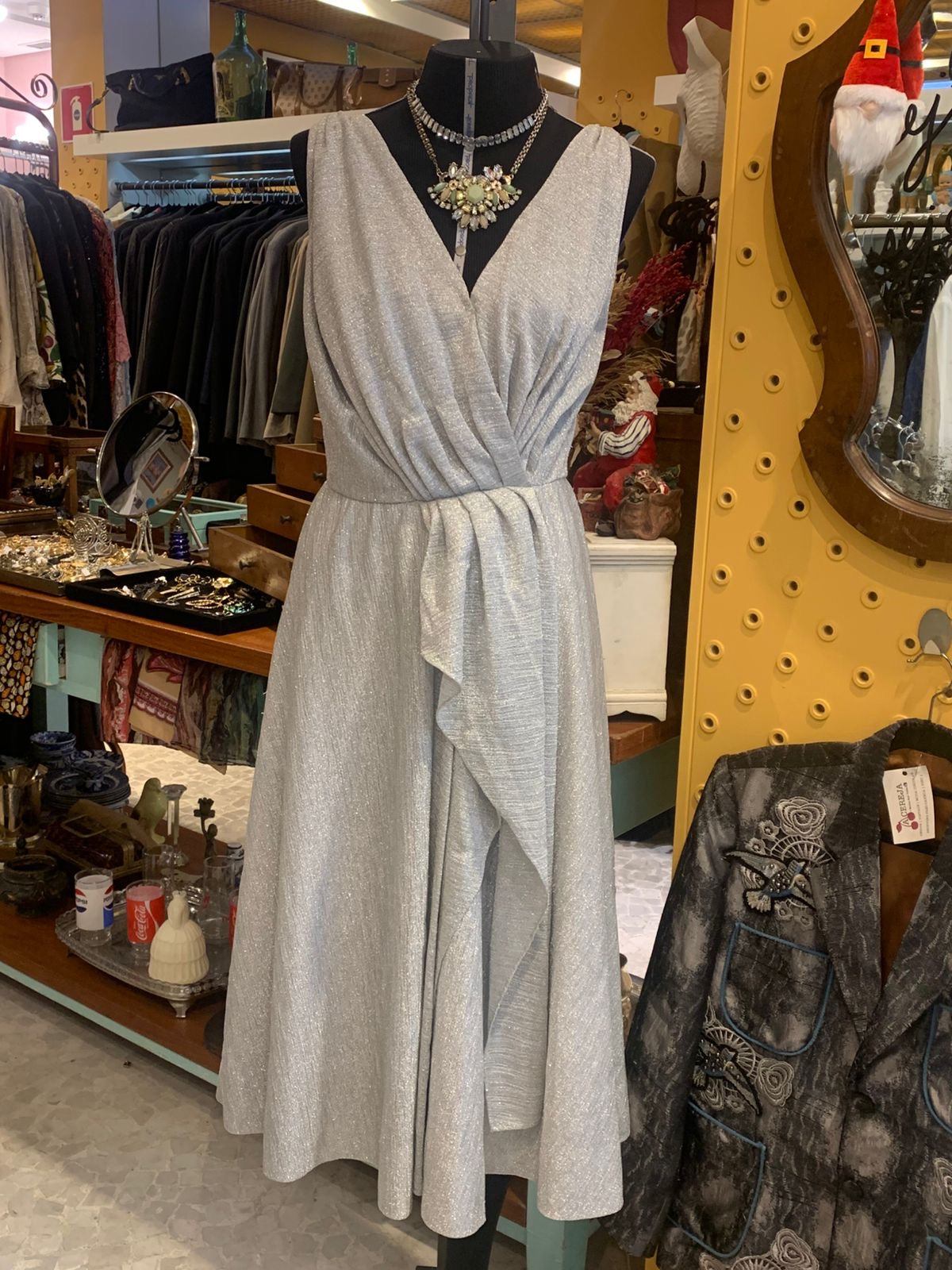 Brilhe com o charme retrô do nosso Vestido Vintage de Lurex Prata. Com um design inspirado em épocas clássicas, este vestido combina glamour e sofisticação em uma peça única. O tecido de lurex prateado confere um brilho sutil e elegante, perfeito para festas, eventos ou ocasiões especiais. Seu corte impecável valoriza a silhueta, enquanto os detalhes vintage adicionam um toque de exclusividade e personalidade.
